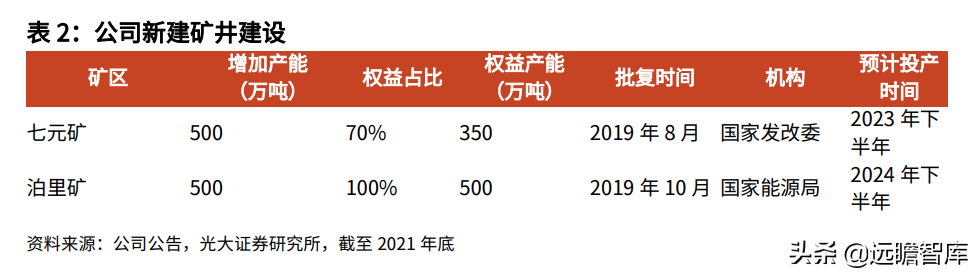 公司煤矿所在地阳泉矿区是我国五大无烟煤生产基地之一,截至 2021 年底,公司共有 8 座在产井矿和 1 座停产井矿,合计核定产能 3450 万吨,权益产能 2928 万吨。