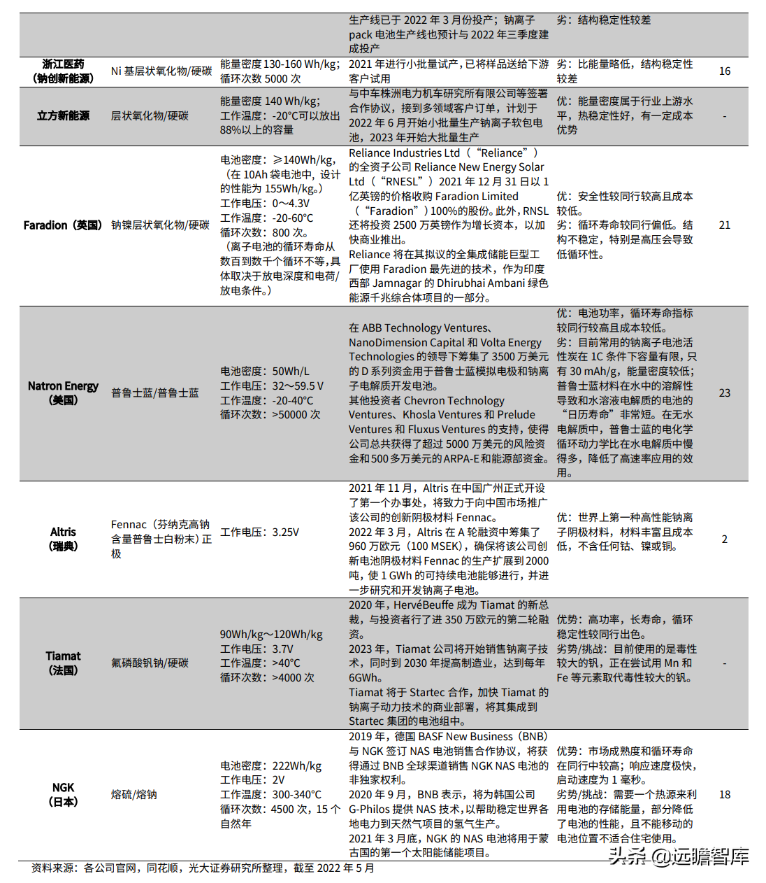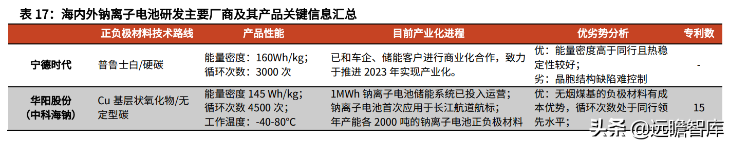 全球范围内,以国内中科海钠、宁德时代、钠创新能源以及国外 Faradion、Natron Energy 等为代表的企业已率先开启钠离子电池的商业化探索,大部分企业已经实现了小规模的试产。