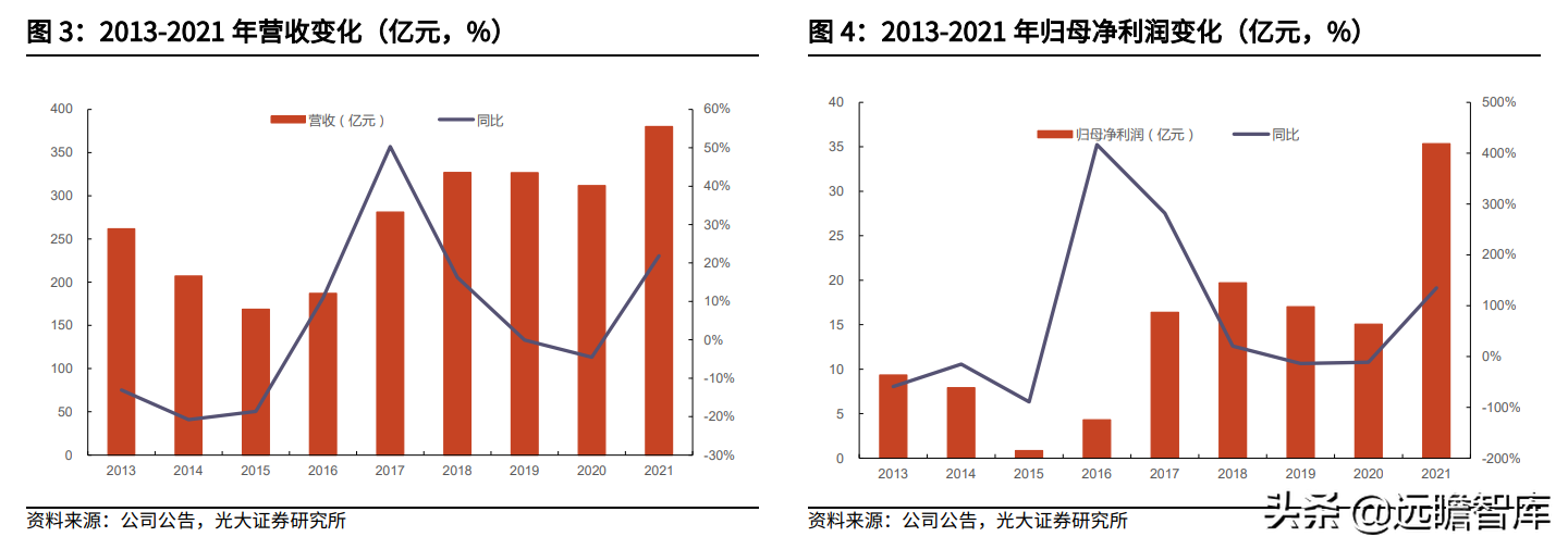 2021 年,公司营业收入为 380 亿元,同比增长 21.89%;归母净利润 35.34 亿元,同比大幅增长 134.80%,主要由于新冠疫情得到控制,煤炭行业景气度提升,公司煤炭量价齐升,带动业绩快速增长。