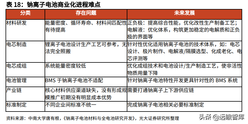 钠离子电池产业化进程中仍存在部分问题有待进一步优化: