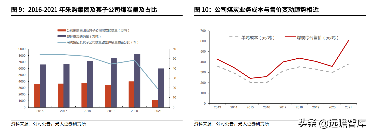 随着集团资产划转以及集团其余煤矿管理权移交,2021 年 5 月后公司不再采购集团及其子公司煤炭进行代销,公司煤炭业务毛利率明显提升,2021 年煤炭业务毛利率为 37.31%,同比增加 20.5Pct。