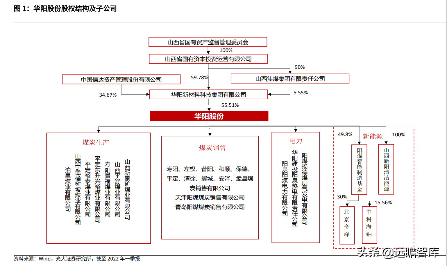 山西华阳集团新能股份有限公司(以下简称“华阳股份”)是山西省国有特大型煤炭企业,主要产品分为煤炭、电力、热力三大类,2021年煤炭部分营业收入占比达到95.07%,煤炭产品主要是优质无烟煤,可用于电力、化肥、冶金、机械、建材等行业。