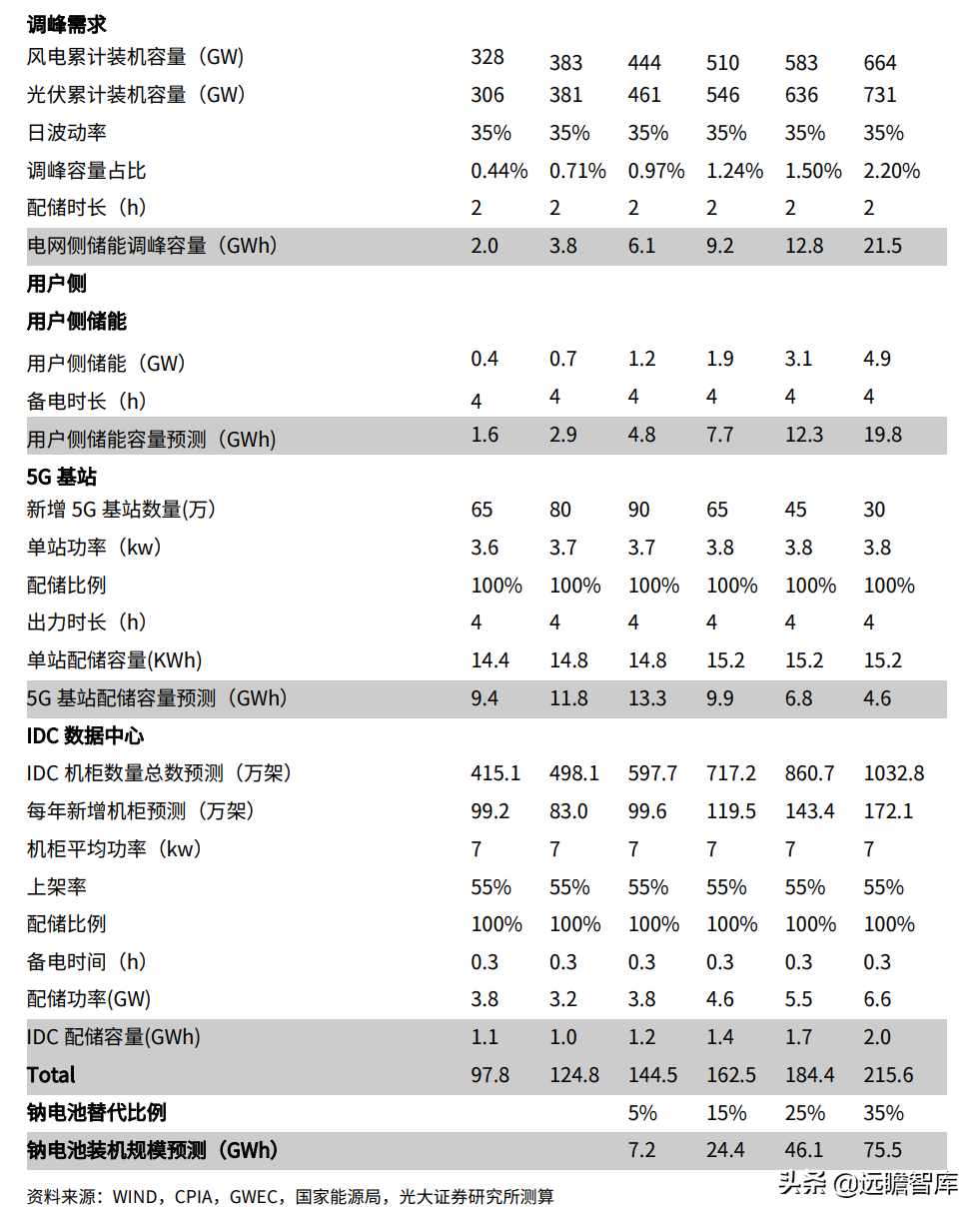 根据华经产业研究院数据,2020 年国内用户侧电池储能新增装机量 173MW,参考全球范围用户侧储能增速 2021 年-2026 年为 137%、76%、64%、62%、61%、60%,参考 2021 年 3 月 10 日光大证券报告《储能,碳中和下的新兴赛道,万亿市场冉冉开启》取备电时长 4h,预计 2026 年国内用户侧储能新增装机量为 19.8GWh;根据工信部《通信业统计公报》,2021 年全国 5G 基站为 142.5 万个,全年新建 5G 基站超 65 万个。