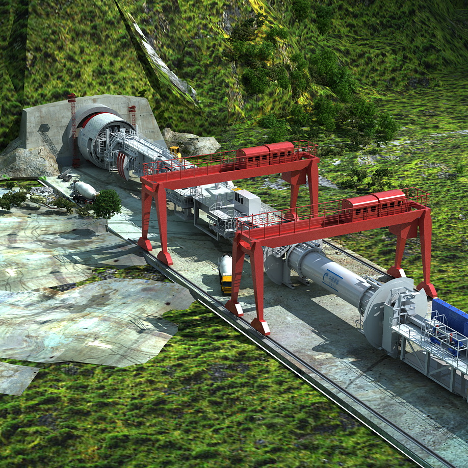硬岩掘进机,集掘进、支护、出渣、运输于一体,主要应用于长距离、大埋深的山岭硬岩隧道施工。