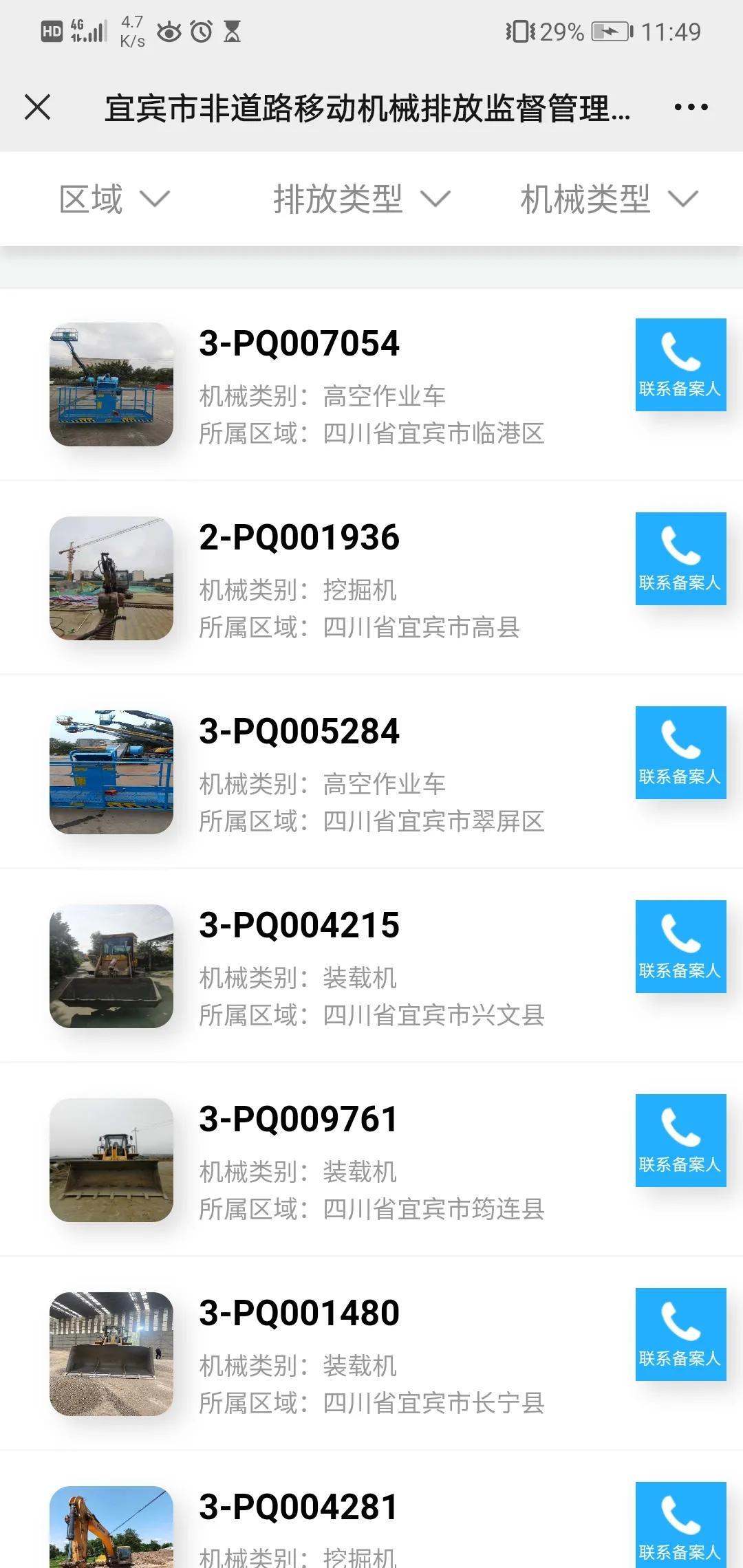 为了方便我市居民查询各区县非道路移动机械信息,特推出宜宾市工程机械查询小程序,直接查询了解不同区县所有的机械类型、排放阶段等!