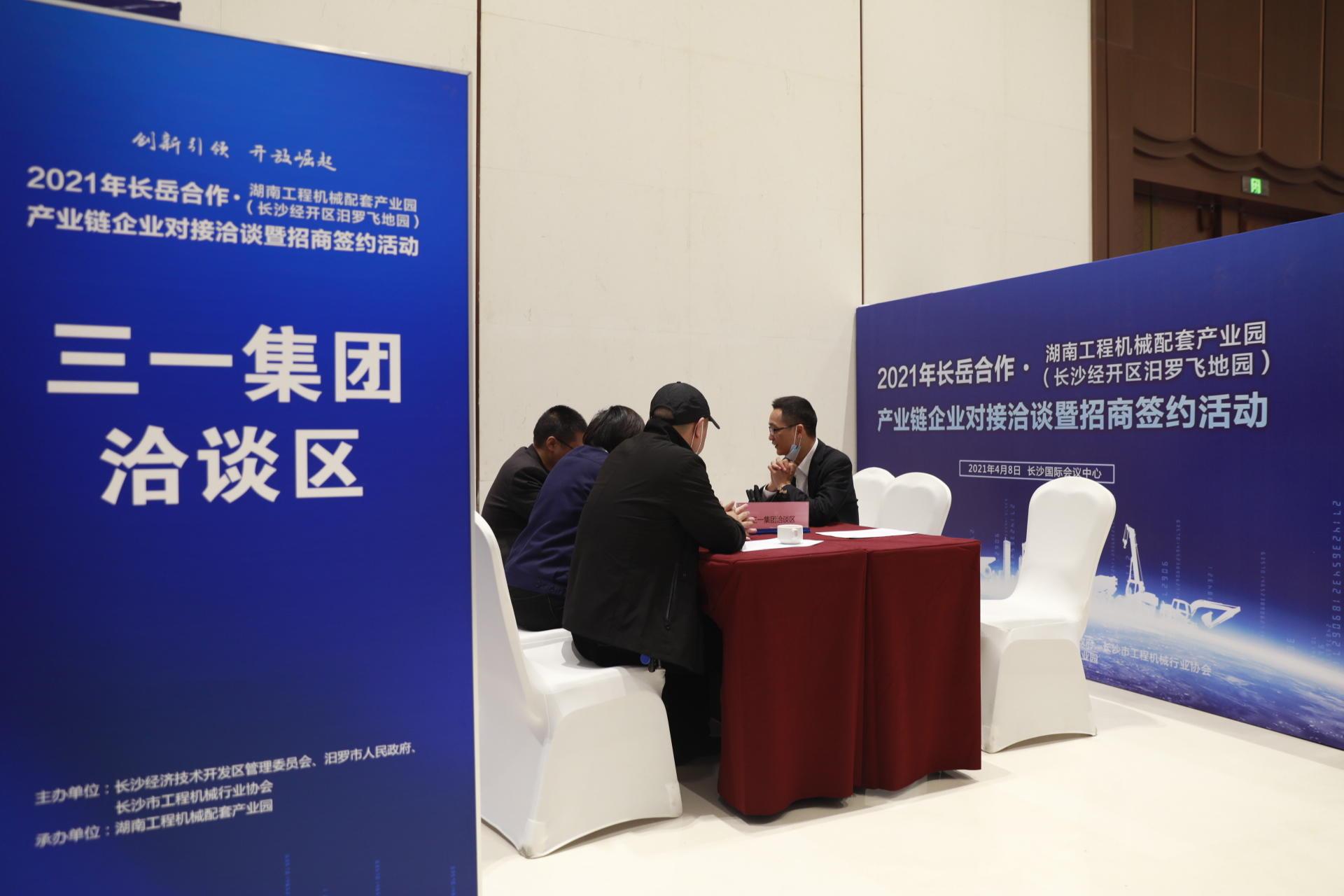 汨罗融媒体讯(记者 任可 周敏 胡清 姚望)4月8日上午,2021年长岳合作·湖南工程机械配套产业园(长沙经开区汨罗飞地园)产业链企业对接洽谈暨招商签约活动在长沙举行,省内外112家企业齐聚现场洽谈合作,三一集团汨罗产业园项目、山河智能汨罗产业园项目等10个项目集中签约,总投资201亿元。