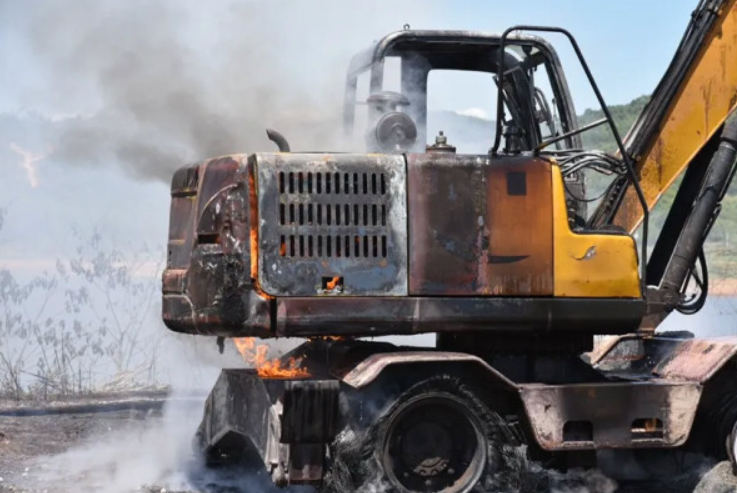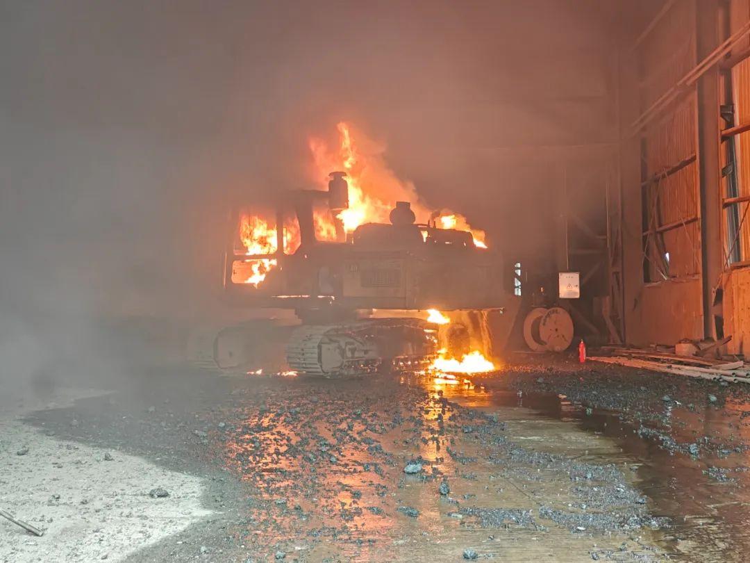 现场挖掘机正处于猛烈燃烧阶段
