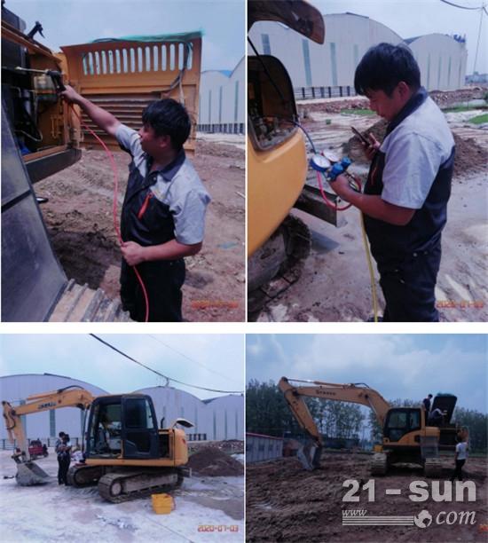 走访小组对挖掘机空调进行检查,清洗了散热系统,全面检查挖掘机各部位的工作状态。同时,走访小组还细心地为刘老板讲解了使用过程中的注意事项,并送上精美定制的小礼品。
