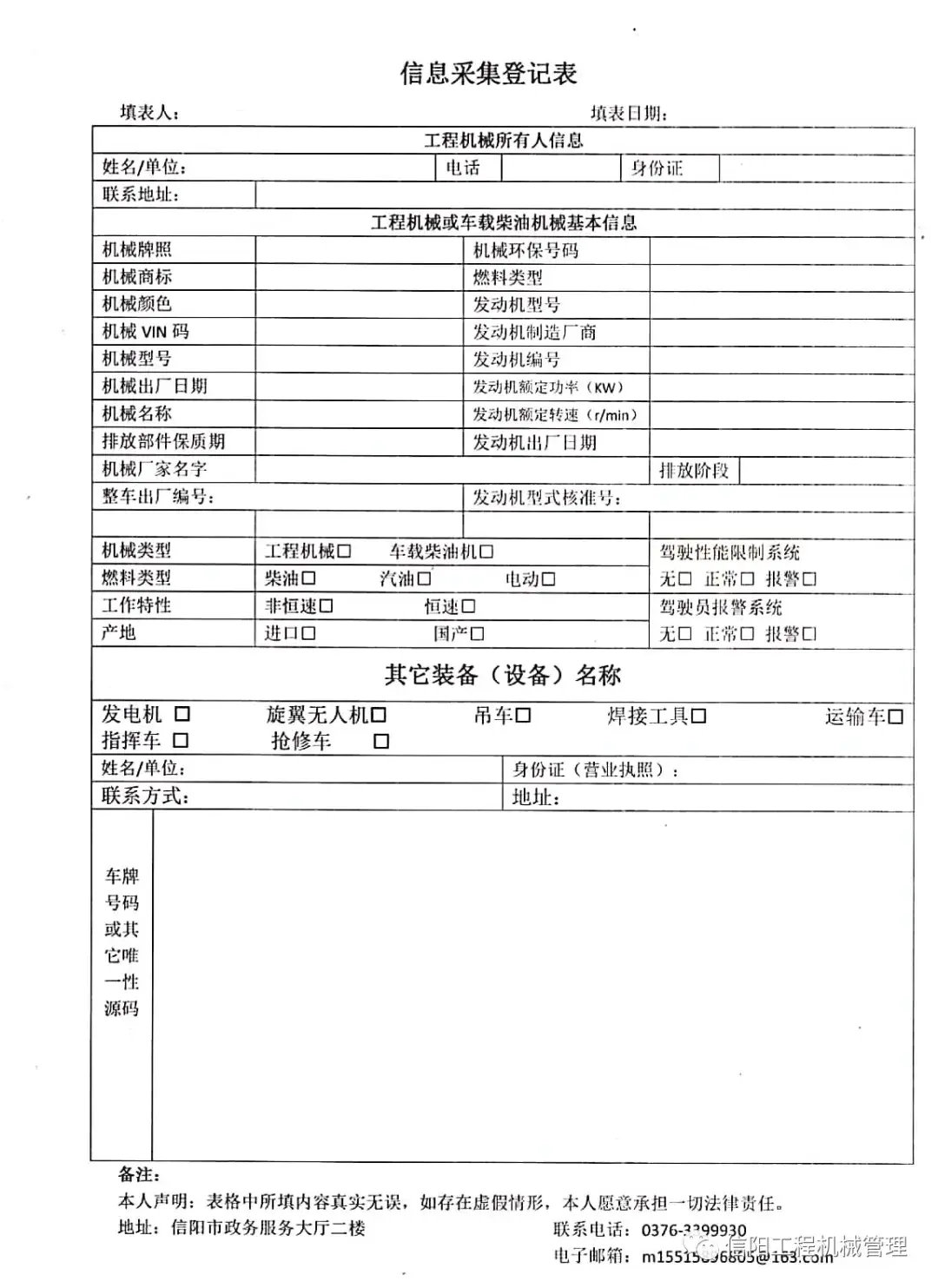 二、装备要求 (附表二:工程机械信息采集登记表)