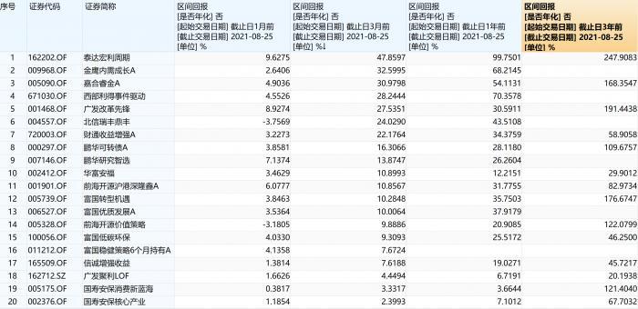 业绩上,近一个月(截至8月25日)排名第一的是泰达宏利周期。