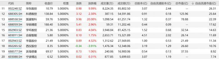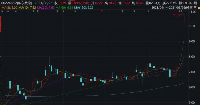 涨幅最大的华东数控,收获了五连板。