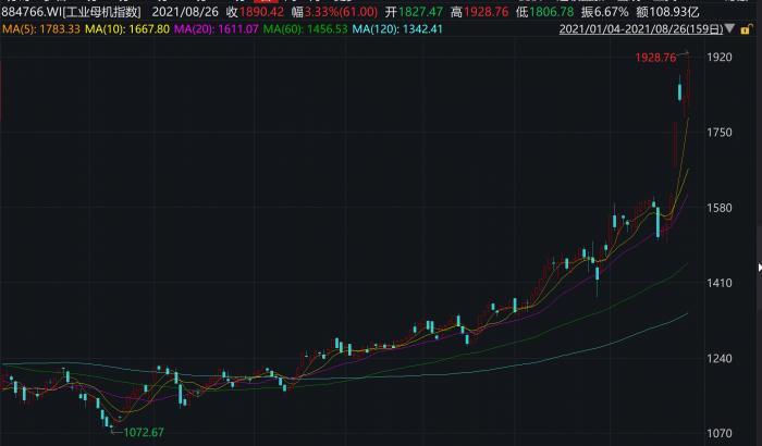数据显示,wind工业概念母机指数短短4个交易日(8月23日-26日)涨近18%。