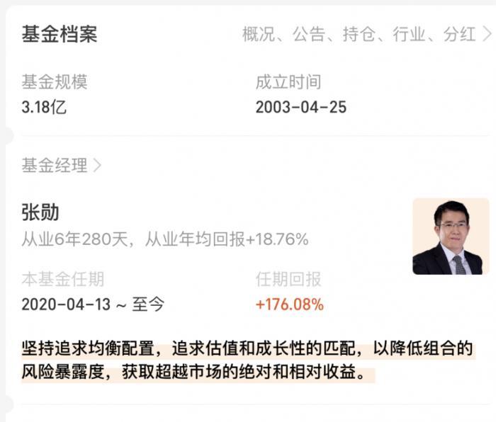 这只基金成立于2003年4月,最新基金规模3.18亿元,是只偏股混合型基金,投资风格上主要被定义为锂电池、特斯拉概念基金。