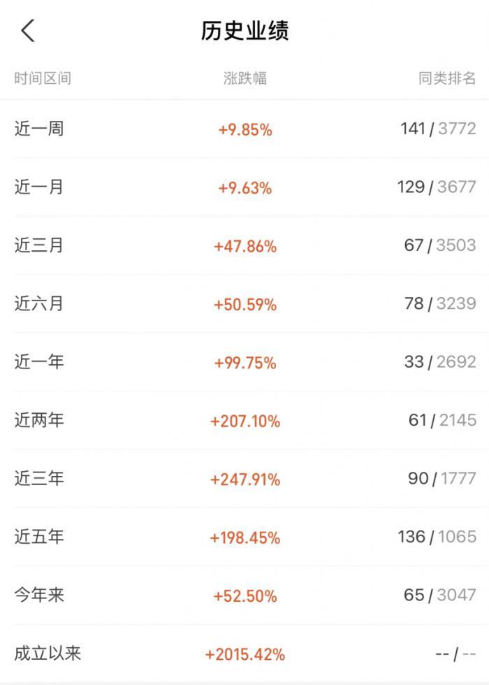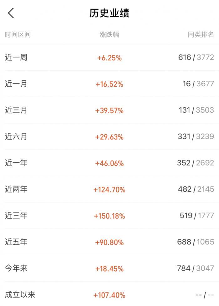 从历史业绩来看,这只基金近一年收益率为46.06%,近五年收益率为90.8%。