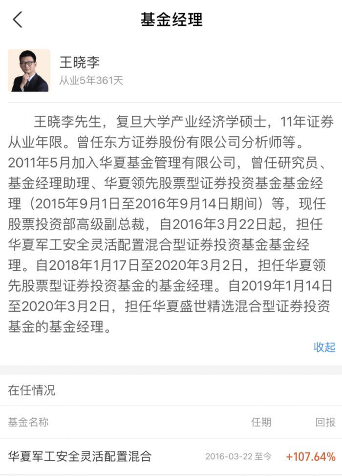 值得注意的是,王晓李在管理的基金只有这一只。