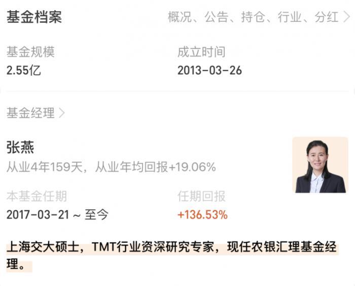 现任基金经理张燕,与2017年3月21日上任,任期回报136.53%。
