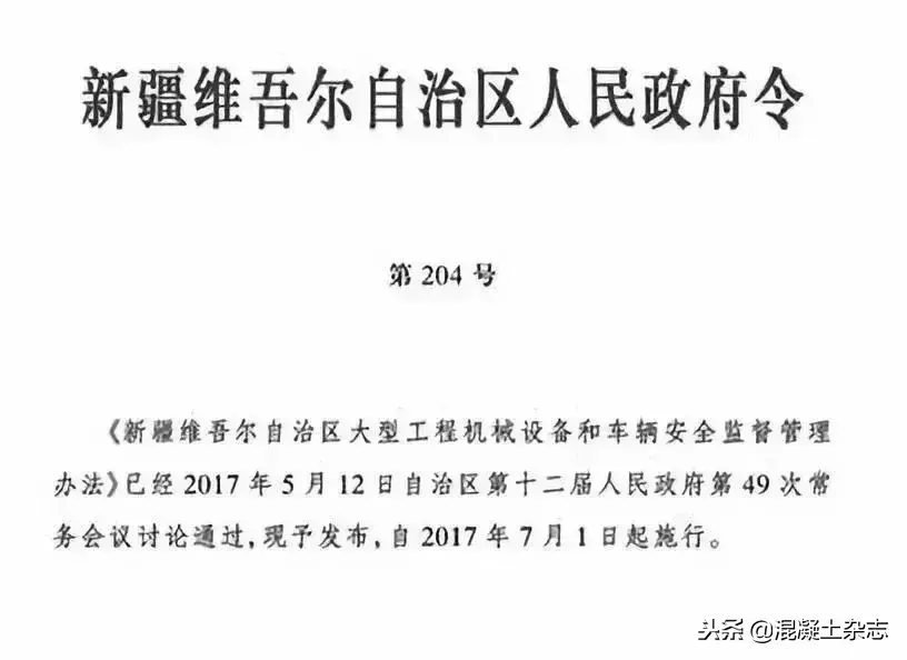 新疆工程机械监管令