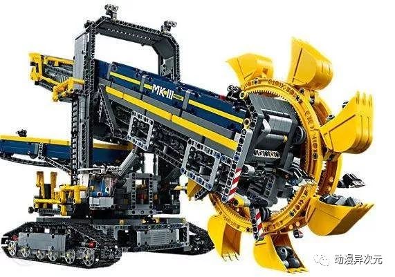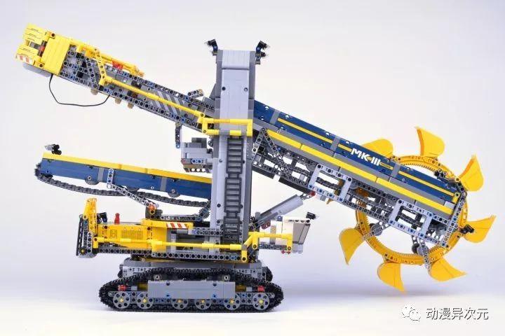 其3929的零件数在当时是乐高科技系列史上颗粒数最多的了,此款产品也忠实的还原了现实版挖掘机的诸多细节,主体分为四大部分,带有履带的底盘,上层建筑,斗轮传送带以及送料传送带,并且还具备电动功能。