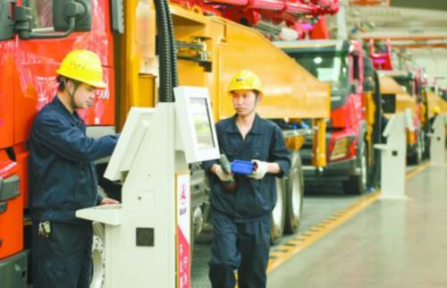 在18号厂房,各个环节紧密协作,通过最后一道检验工序后,喷涂着“SANY”品牌标识的混凝土泵车等设备,“肩负”着各自使命,奔赴世界各地。