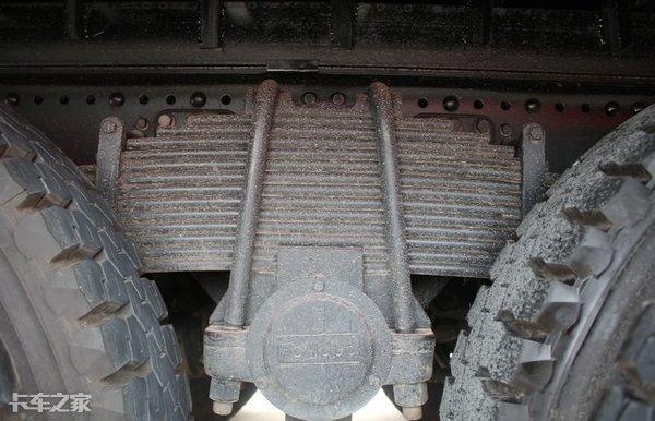 速比为4.11的XST-26-470型冲焊桥采用13片簧抛物线钢板悬挂,为了保证负载情况下的稳定性钢板骑马卡两侧位置还加装有固定装置。