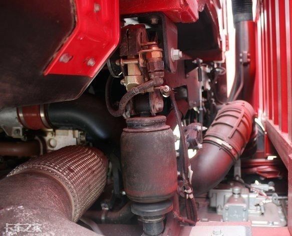 驾驶室采用四点气囊悬挂设计,颠簸路面下具有更好的舒适性体验。个人看法这款威龙驾驶室后部气囊悬挂距离排气管接口不过10cm,在没有外侧防护的情况下长期受热会影响使用寿命。