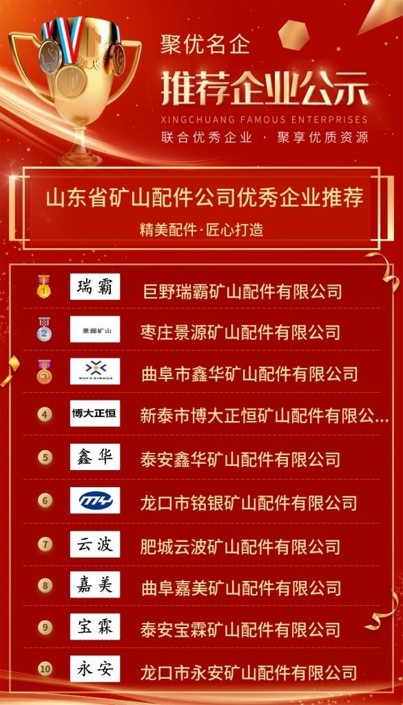 「优秀企业推荐」山东省矿山配件公司优秀企业推荐公示