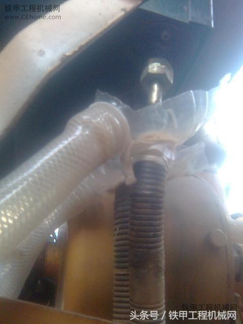 我接车时刚好58小时,刚好过磨合期。在我之前那个师傅一直在公路段开公家的东西,不知道爱惜车,驾驶室搞的比较脏,车也磨合的不合我的理想。接过车把高压管和车架磨住的地方又用皮管包了个遍,把柴油管也包了个遍又用铁丝固定住 ,不然一供油它乱动容易磨破,老板一看我这么细心就给我加工资了。不啰嗦下面说车把。