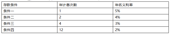 2.某企业面对金融机构提供的四种存款条件,相关数据如下表,最有利的选择是()。