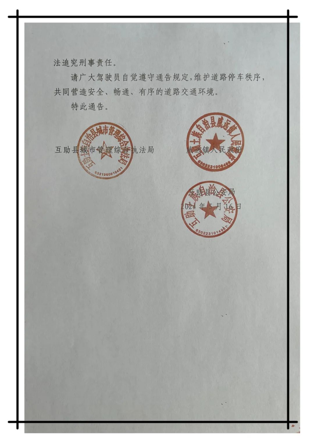 请广大驾驶员自觉遵守通告规定,维护道路停车秩序,共同营造安全、畅通、有序的道路交通环境。