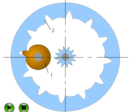 每个齿轮(螺杆)都只有一齿,齿轮端面宽度必须大于齿轴间距。