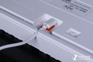 该键盘的连接线是和键盘分离的,连接线一头是Type-c接口,接键盘;另一头是USB接口,接电脑。Type-c和USB接口均采用了镀金工艺,镀金的接口可以提高抗氧化性和传输效率;数据线采用橡胶材质,柔软、耐磨,还额外配送了一个绑线带;在靠近接口处有一个滤波磁环,可以起到抗电磁干扰、保障有效信号传输的作用。
