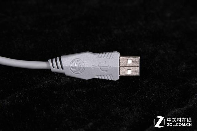 新贵GM350机械键盘的线材长度为170cm,直径约为4mm,采用灰色橡胶线包裹而成,线材的柔韧性十分好。不过USB接头采用了普通材质,并没有采用镀金工艺。