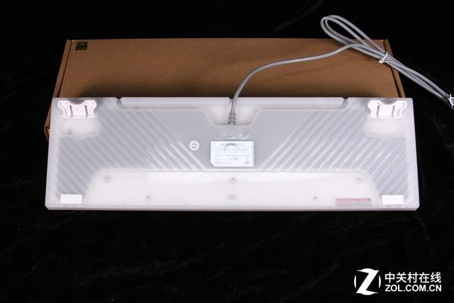 这款键盘在不通电的情况下,白色亚克力底壳的透明度并不算十分高,从侧面基本看不出,与白色的键帽相呼应,也并不显得突兀,从外观来说,新贵GM350这款键盘还是给人印象深刻的。