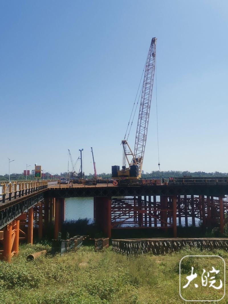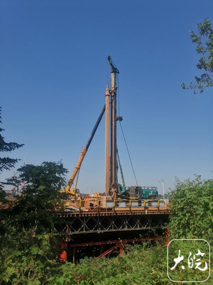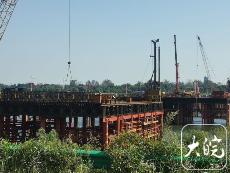 大皖新闻记者看到,河道上的施工平台上的桩基施工进度各有不同,有的钢围堰已经“冒出”水面,有的正在进行打桩作业,还有的才刚刚开始准备钢围堰施工。“先是把钢围堰打下去,然后才能打桩,抽出下面的泥水,比较费事。”一位工人简单介绍说。