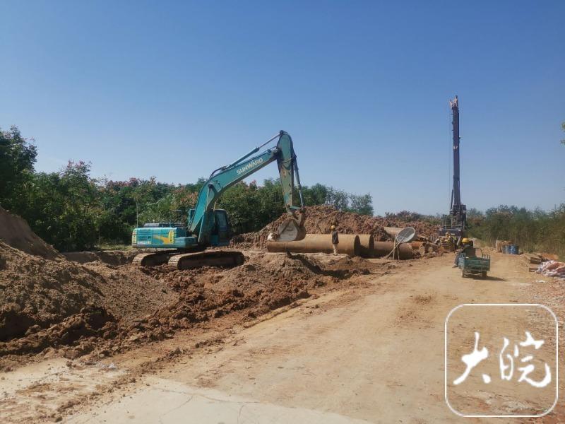 大皖新闻记者随后来到马路对面的一处工地,发现144号桥墩已经从基坑里“冒出”,很快就能进行地面以上段施工了。