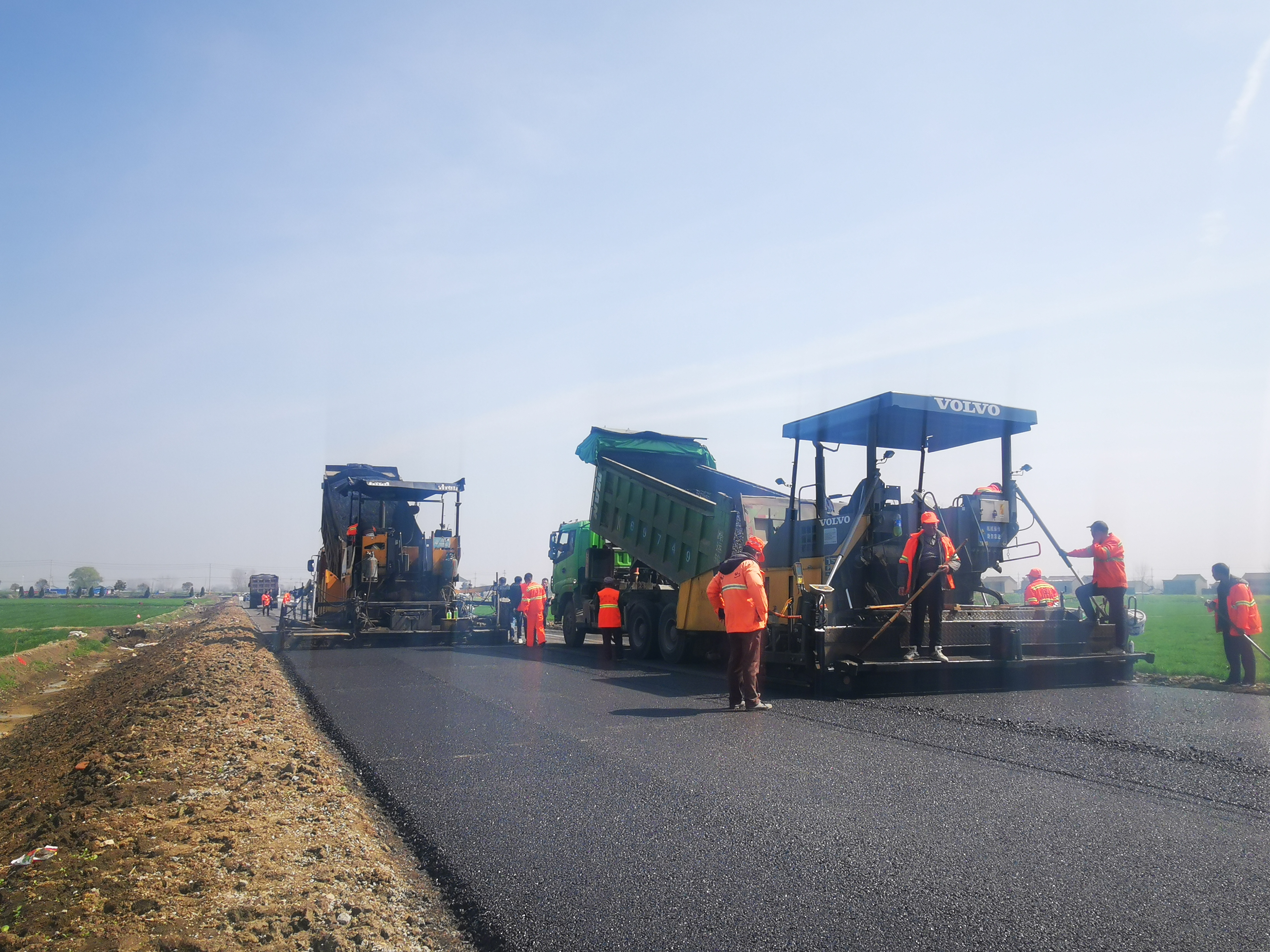 目前道路工程施工时水泥稳定碎石基层、底基层,沥青混凝土面层需使用摊铺机进行铺设。