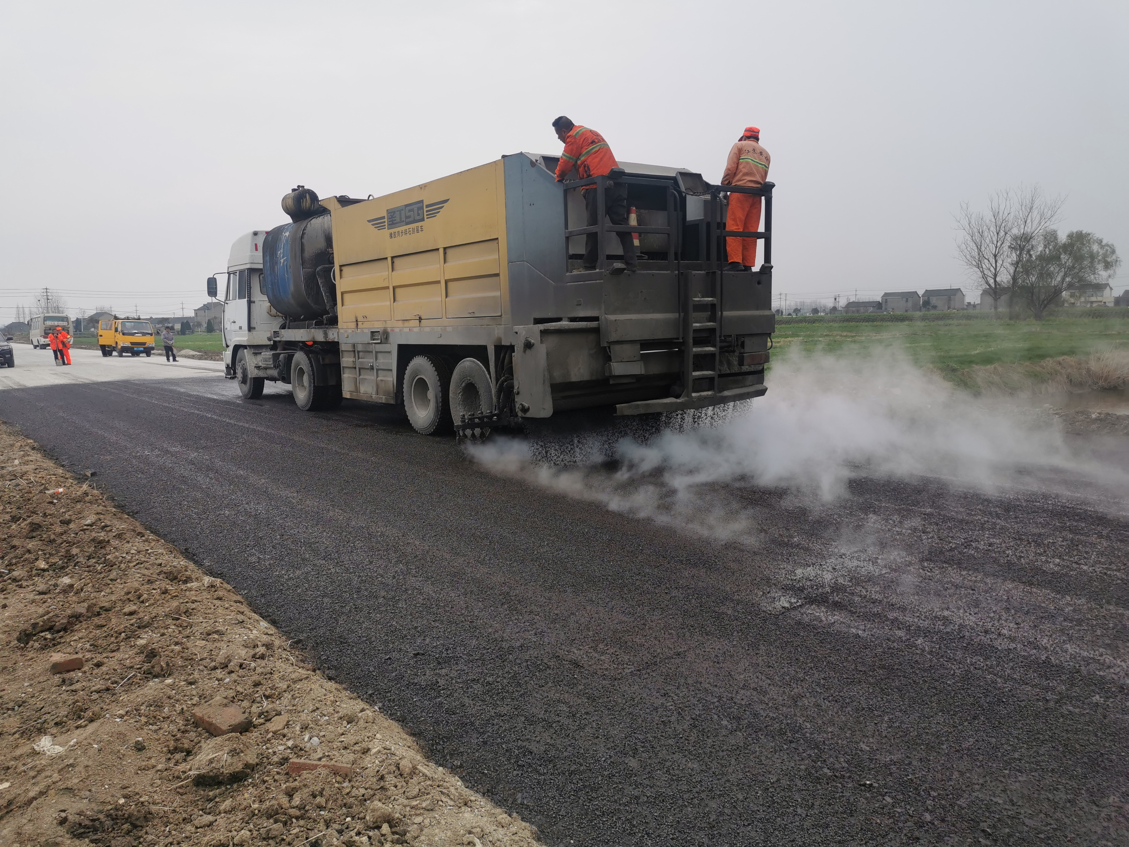 2、同一点的沥青和碎石撒到地面的时间间隔不会超过0.5秒,增加了沥青与碎石的黏结度;