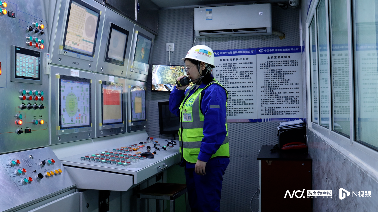 杨涔在主机室操控盾构机。