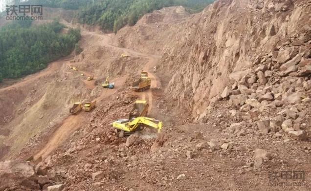 进行作业之前必须要对场地进行观察,矿山地处高海拔的地区,坡道比较多弯道急,对机手要求比较高。另外一般私人小矿山公路比较狭窄,并且没有搪石路,都是土路,雨季的时候无法行走。上图就是露天矿工程的场面,在这里开挖掘机需要特别注意安全。