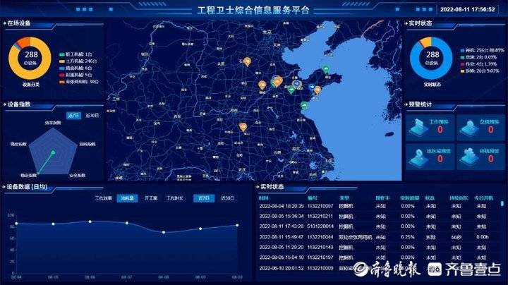 据悉,在天星北斗工程卫士工程机械智慧管理系统的远程监管下,工程机械进场后,管理人员即可在大屏上实时监测机群的动态,了解每台设备每时每刻的运行状态,自动采集机械的工作时长、工作状态等数据,提高统计分析效率,方便结算管理,切实提高了施工企业的数字化管理水平。