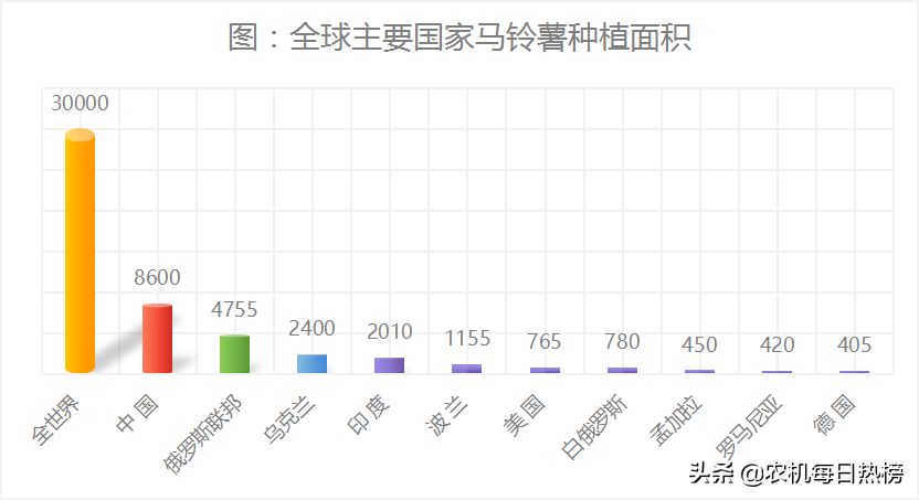 全球各国马铃薯种植面积加起来应该是3亿亩左右,中国种植面积和产量均雄居全球第一,其次是俄罗斯和乌克兰,中国种植面积约为全球的28%。