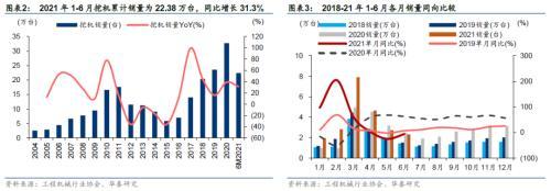 今年以来,工程机械行业海外需求也大幅增长。华泰证券认为,全球复苏有望带动挖掘机出口高速增长。工程机械行业协会数据显示,2021年1-6月纳入统计的26家主机制造企业共计销售各类挖掘机械产品22.38万台,同比上涨31.3%。其中,各类挖掘机械产品出口销量30133台,同比上涨107.4%。