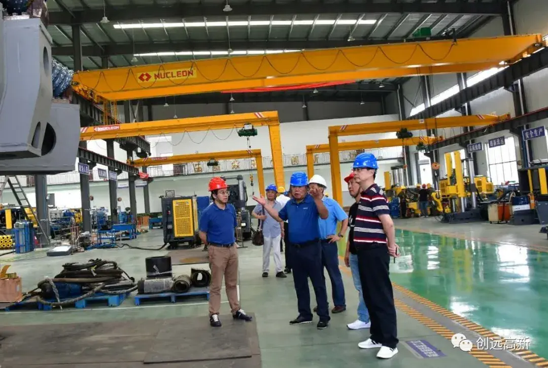 在签约仪式正式开始前,金石资源董事长王锦华、旺华萤石董事长罗芳初等领导来到矿机生产车间进行实地参观,详细了解了智能矿山系列装备等典型产品,并对我司技术创新能力和产能表示充分肯定。