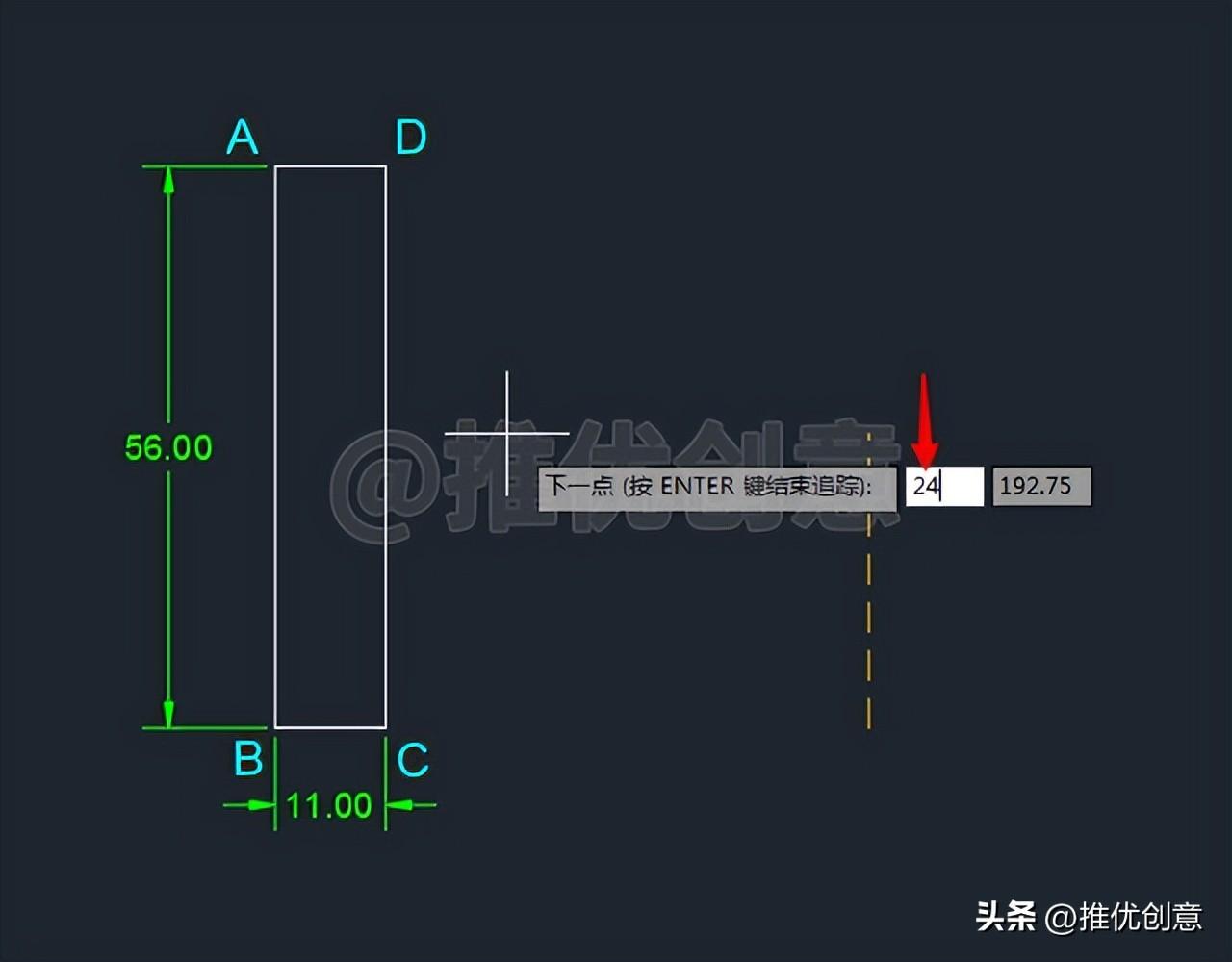 2.6、向上 移动光标 ,输入“24 ”后回车,指定下一个追踪点 。