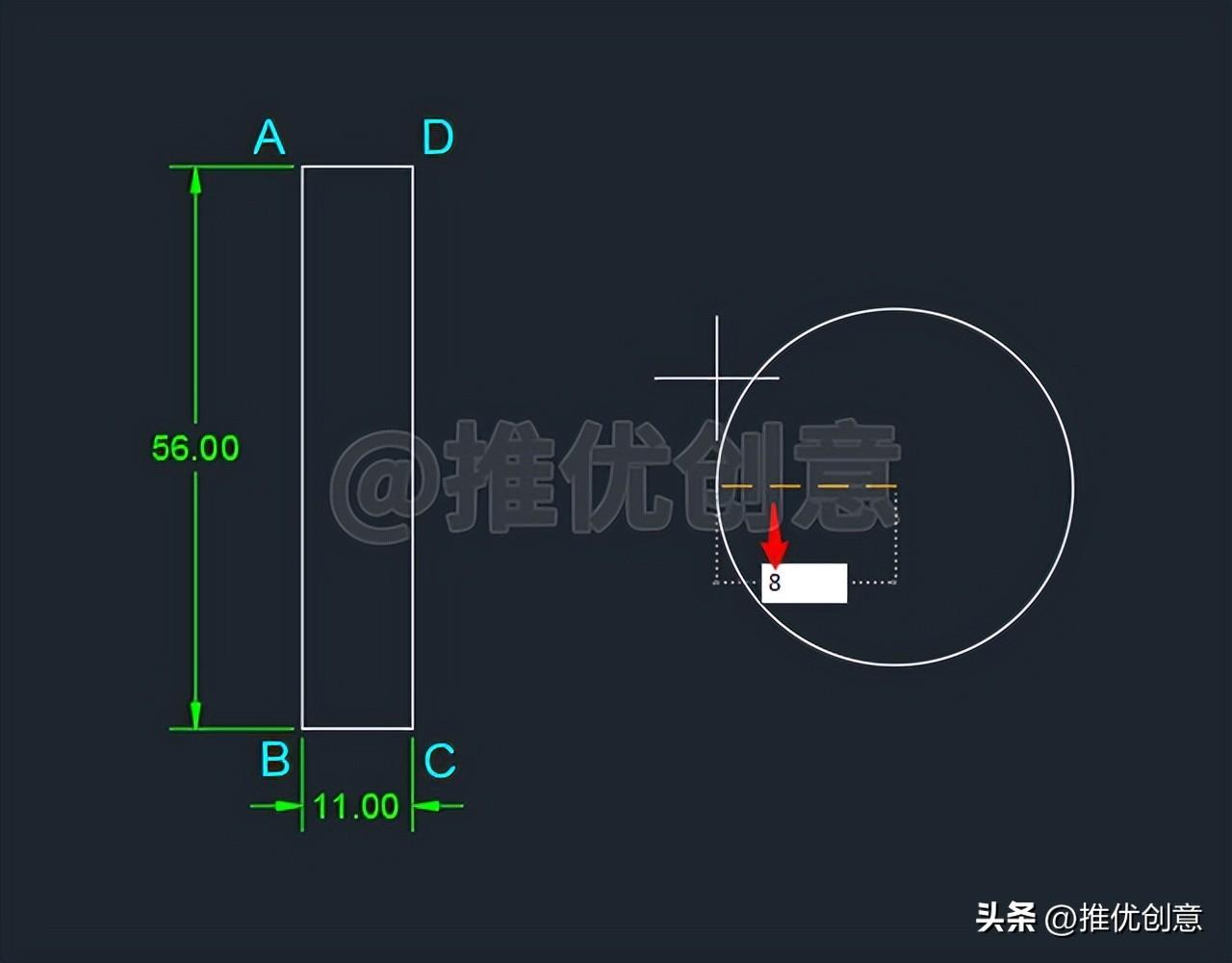 2.19、输入圆的半径值 “8 ”后回车。