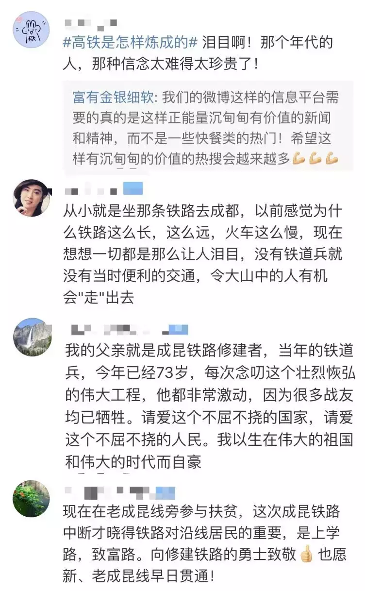 此外,多家媒体根据相关内容自建话题,引发网友讨论,如@人民日报 自建话题#中国的大桥会跳转体舞#、#每2.5公里就有一名战士牺牲#,@人民网 自建话题#这条铁路每2.5公里就有一名战士牺牲#,相关话题阅读量分别达1544.3万、850.5万、159.5万。与本次活动相关的话题总阅读量超过一亿次!