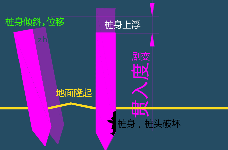2)桩身发生突然倾斜、位移或有严重回弹;