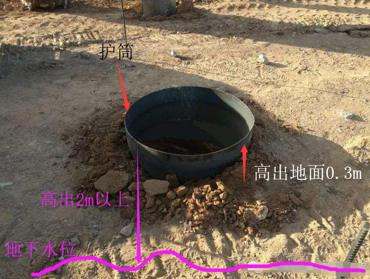 ▼护筒高出地下水位1M