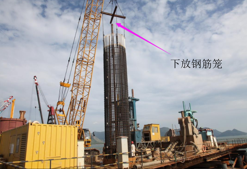 1.桩孔检验合格,吊装钢筋笼完毕后,安置导管浇筑混凝土。