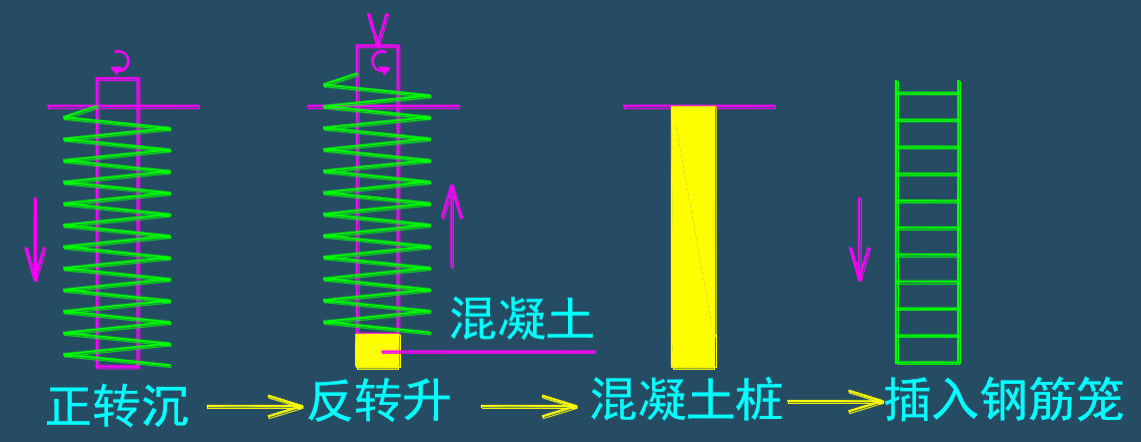 (4)混凝土压灌结束后,应立即将钢筋笼插至设计深度,并及时清除钻杆及泵(软)管内残留混凝土。